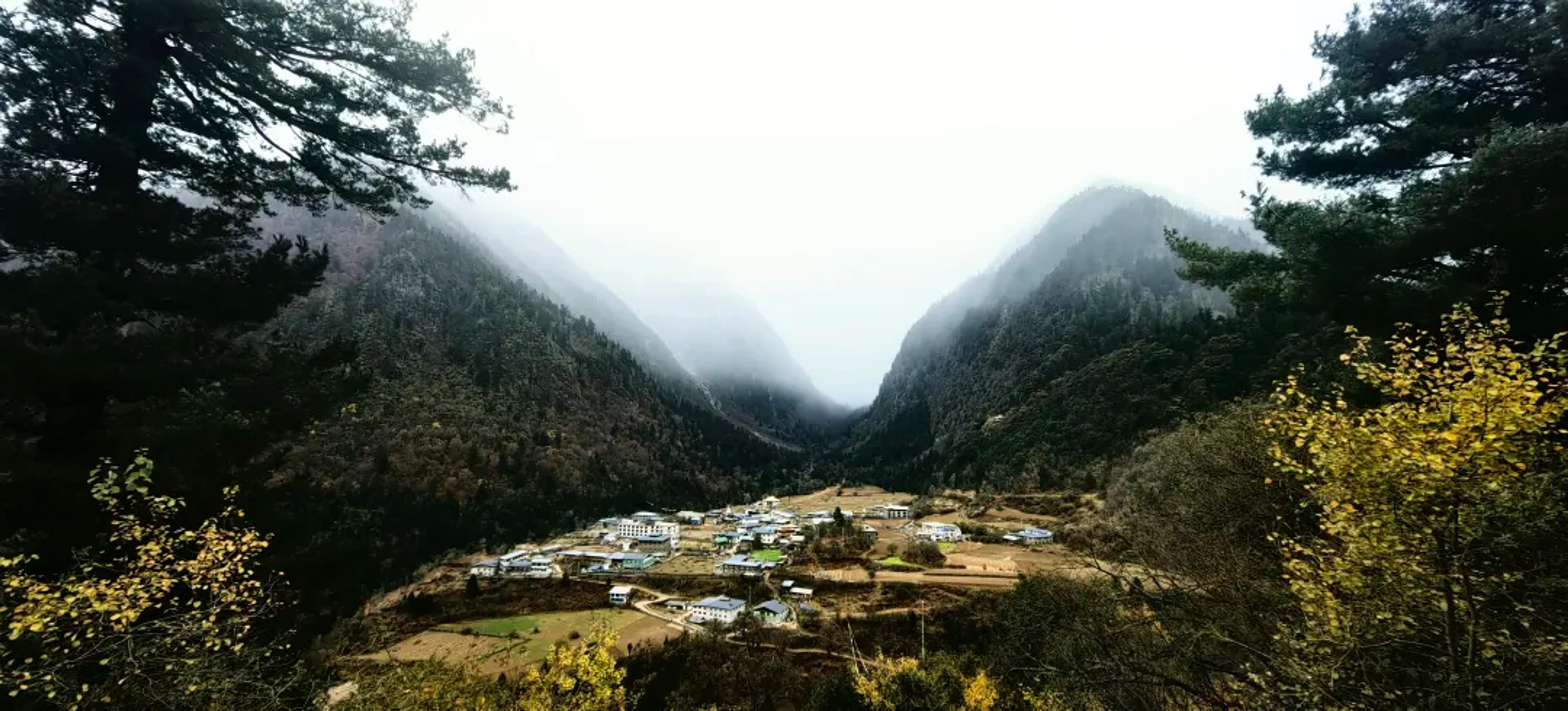 Yubeng is divided into Upper and Lower Yubeng and is the highest natural village in the Meili region, with an average elevation above 3,200 m. It is surrounded by Sacred Lake Mountain, Xiuxing Mountain, Bendun Mountain, and Nianda Baisong Mountain, with the sacred peaks of Miancimu, Kawarandza, and Kawagebo enclosing the outer ring. Located in the southern section of the eastern Himalayas, the village has a plateau humid climate, featuring distinct rainy and dry seasons.